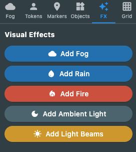 - Visual Effects — Layer fog, rain, fire, and moody lighting for extra immersion.